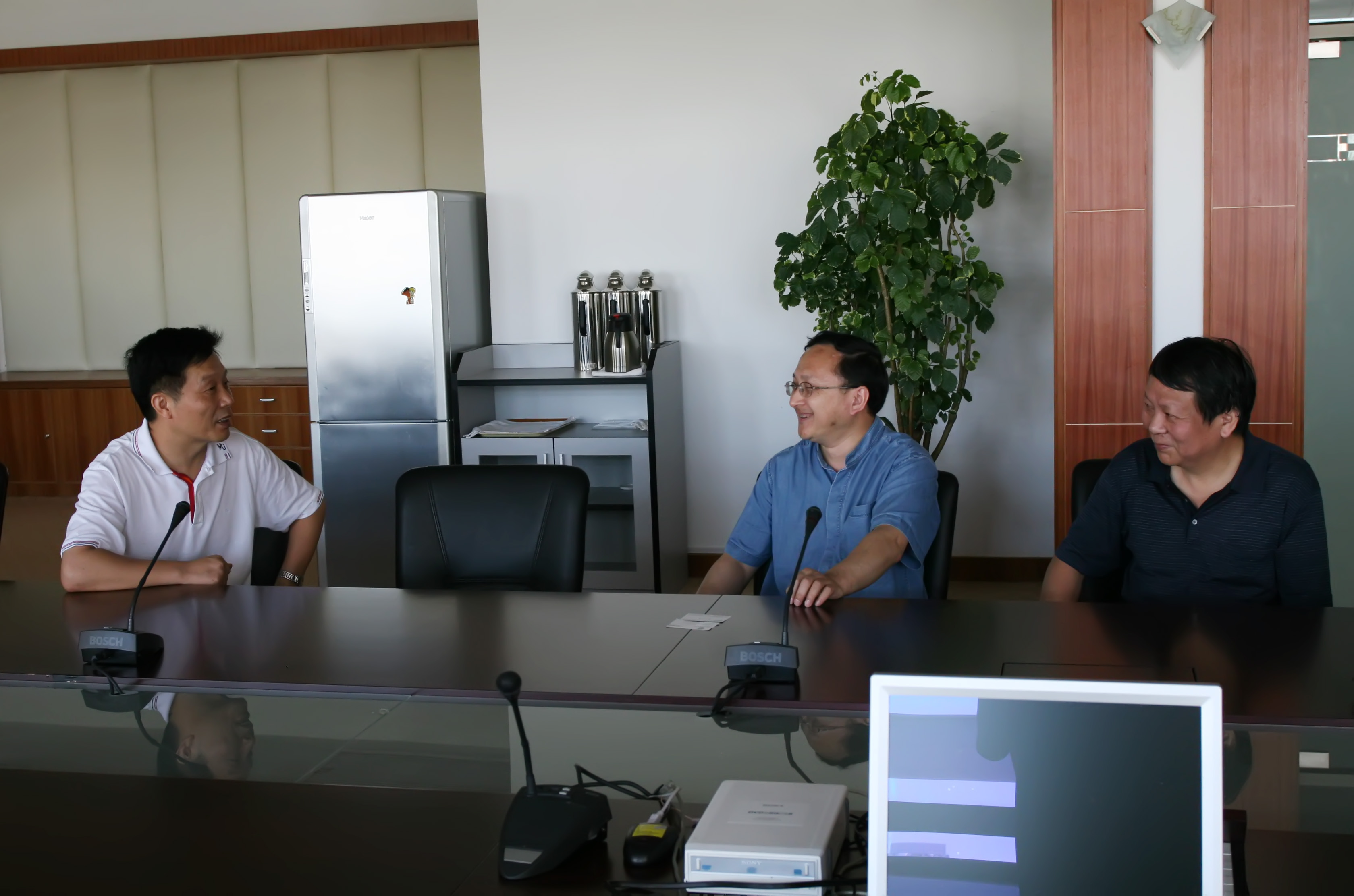 慰问小组与广东电动工具厂曹家美总经理等领导及实践教师进行了座谈,在座谈上,曹总经理对实践教师的认真负责的态度和刻苦专研的精神作了充分的肯定,认为教师到企业实践是一个双赢的创新模式,希望能和我院建立长期的合作关系。林世俊督学对厂方领导的支持表示感谢,鼓励实践教师尽快完成课题。何伟老师介绍了实践期间的工作情况,并表示了尽快完成课题的决心。