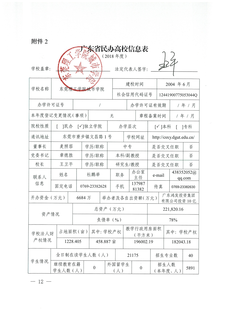 东莞理工学院城市学院关于广东省民办高校2018年度检查表的公示