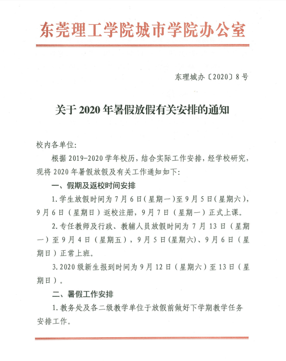 关于2020年暑假放假有关安排的通知