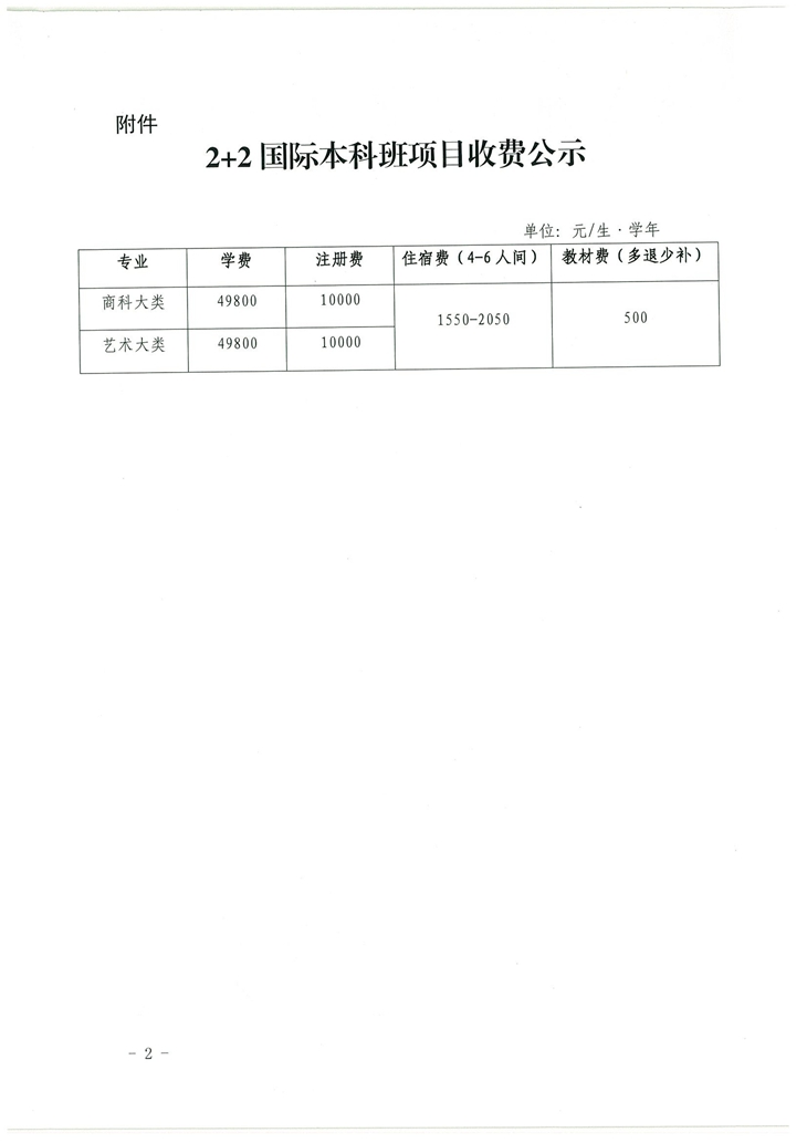 关于2+2国际本科班项目收费标准的公示