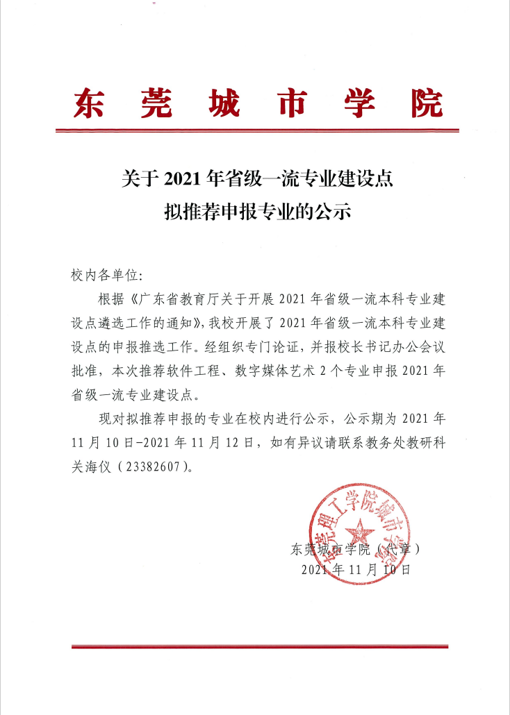 关于2021年省级一流专业建设点拟推荐申报专业的公示