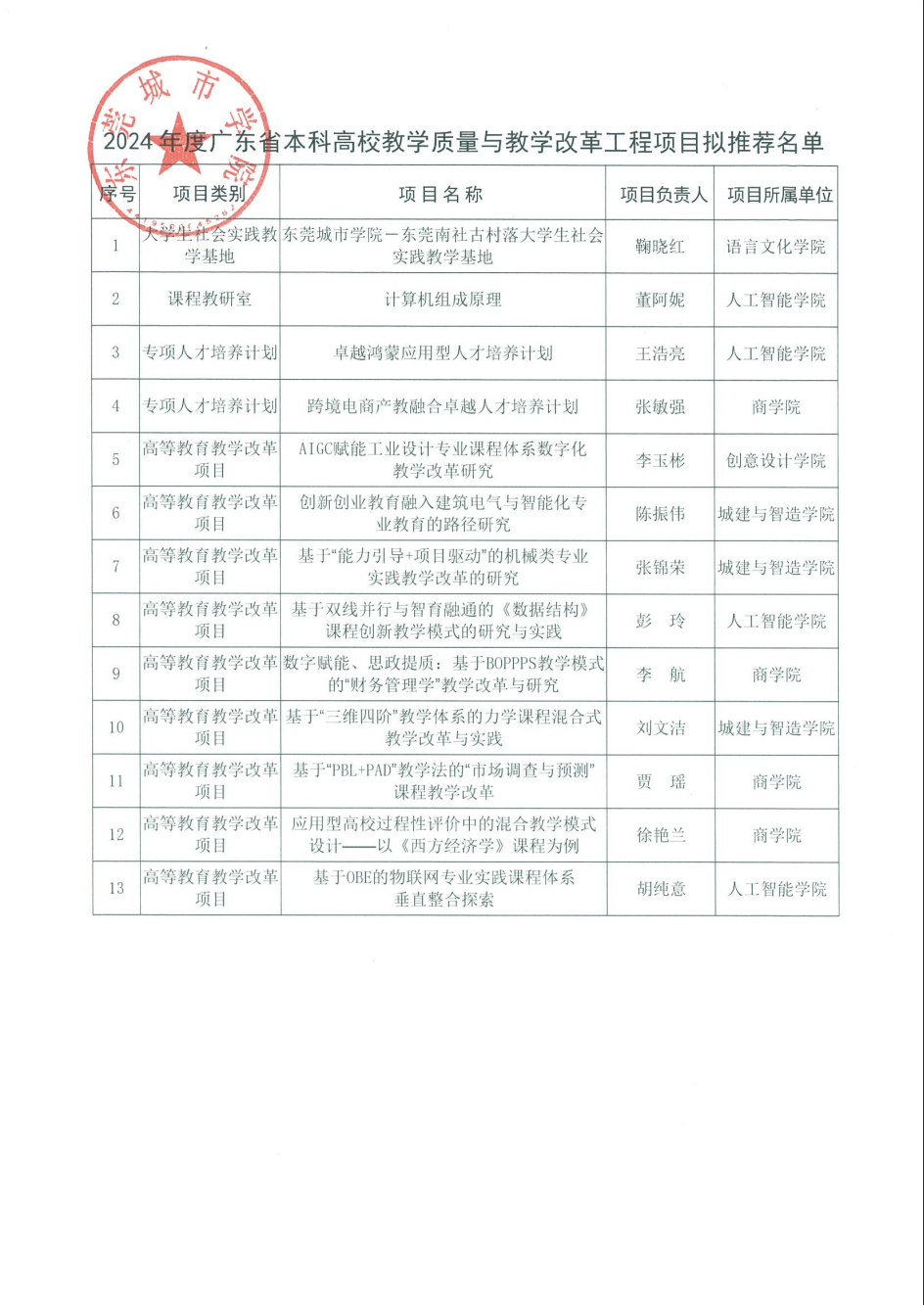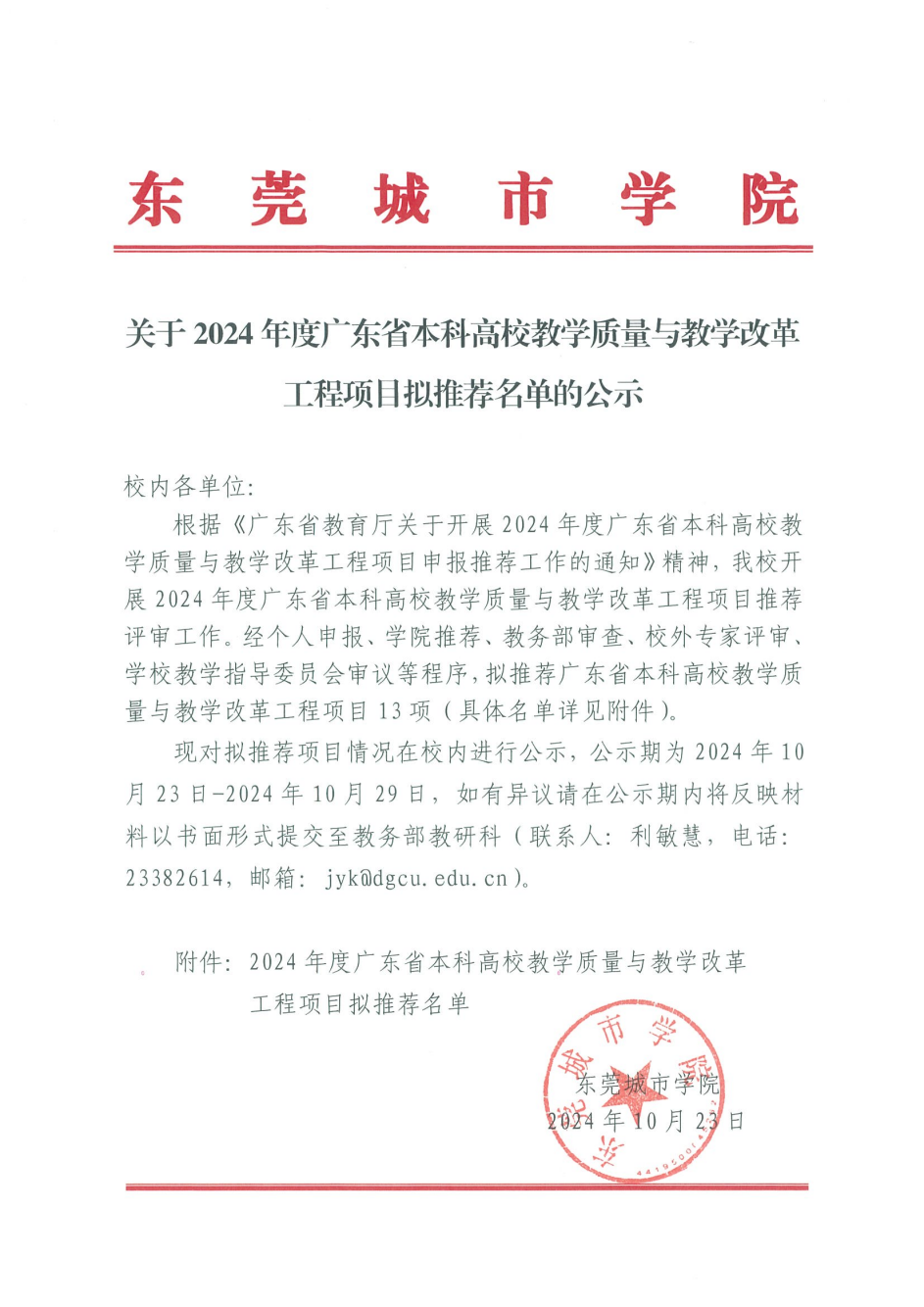 关于2024年度广东省本科高校教学质量与教学改革工程项目拟推荐名单的公示